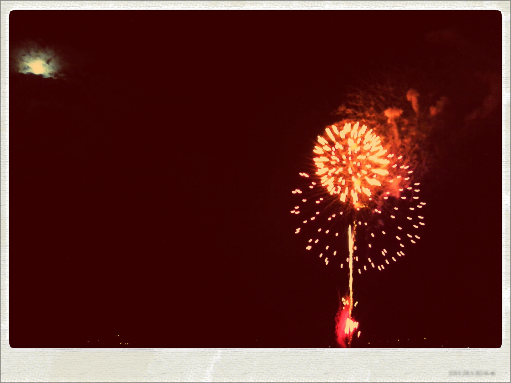 大きなお月様と花火がとっても綺麗でした。