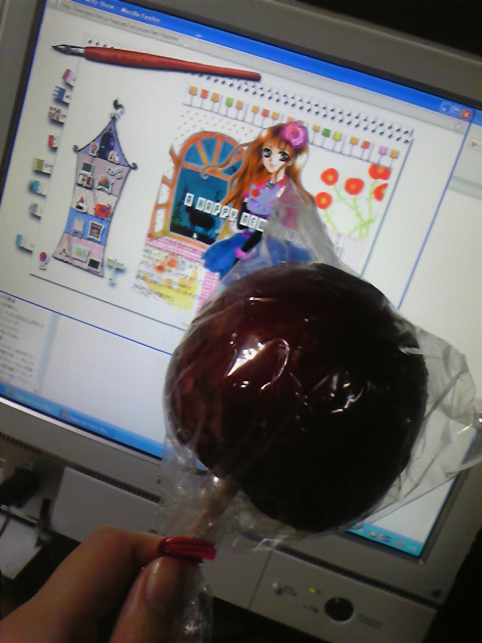 新年ひとつめの日記を、りんごあめ(大好物)をかじりながら書いております。