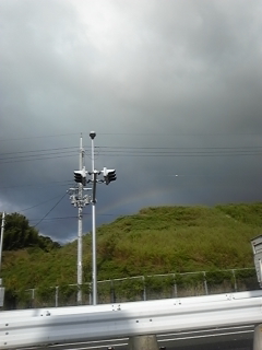 車に乗っていつも通りに出掛けたら、信号待ちで虹を発見!