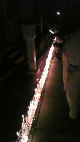 時間がくると、みなさん火を灯したろうそくを参道の両脇に立てていきます。