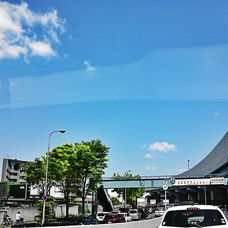 真夏のような暑さの電車より。