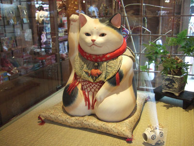 そのお店の入り口に居る招き猫さんが本当に素敵で(↑写真)釘付けでした。こんな良いお顔をした招き猫に出会ったのは初めてです。