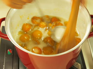 完熟の梅はすごく柔らかくてジューシーなので、お砂糖と一緒に火にかけるとすごく沢山水分が出ます。